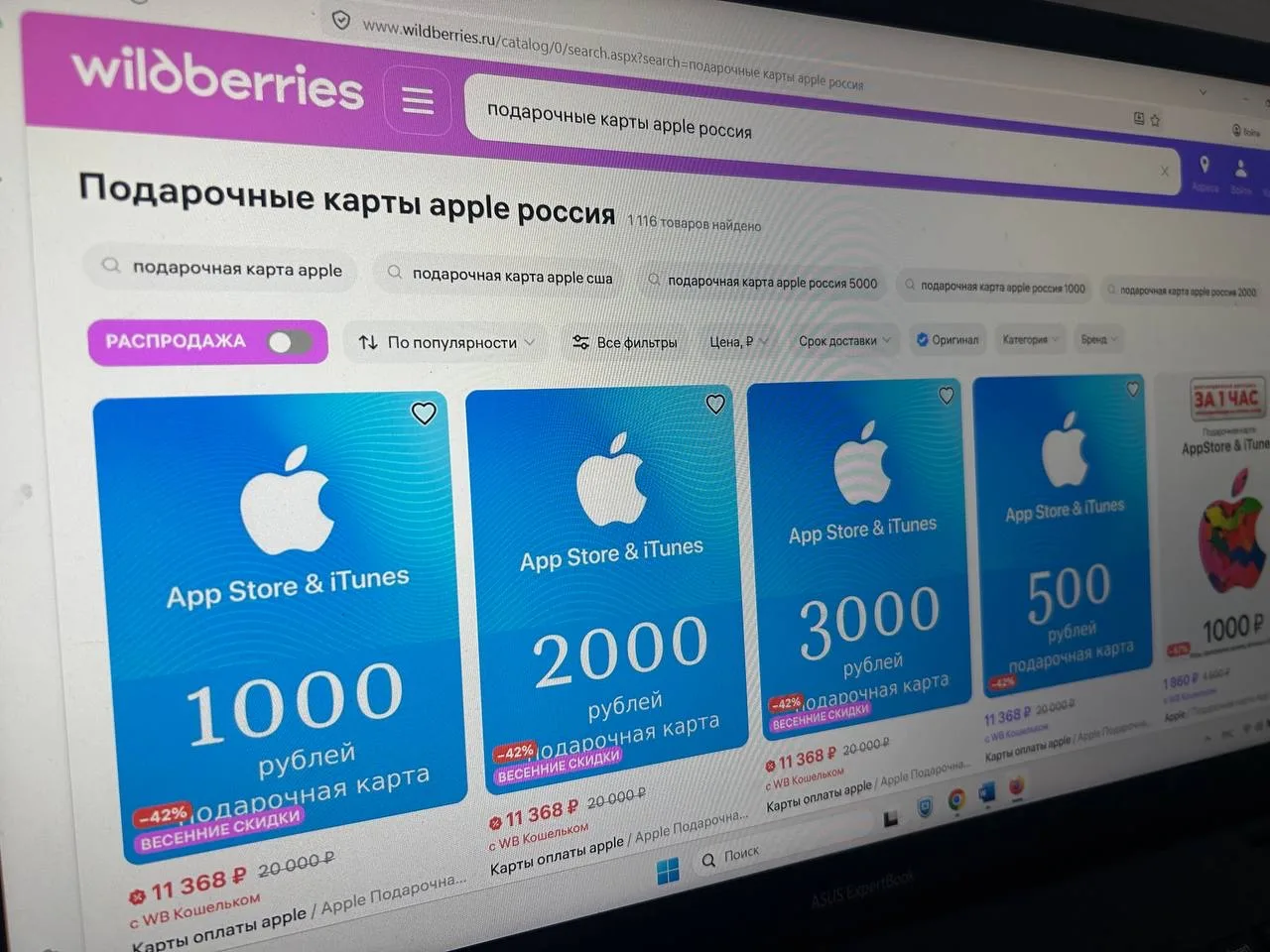 На «Яндекс маркете» карта на 1000 руб. стоит 3645 руб., на 2000 руб. — 5800 руб., а на 9000 руб. — 17 614 руб. На Ozon подарочная карта на 1000 руб. продается за 90 369 руб. На Wildberries карта на 500 руб. обойдется в 2197 руб., на 5000 руб. — 12 109 руб. Еще вчера подарочные карты стоили ненамного дороже своего номинала.