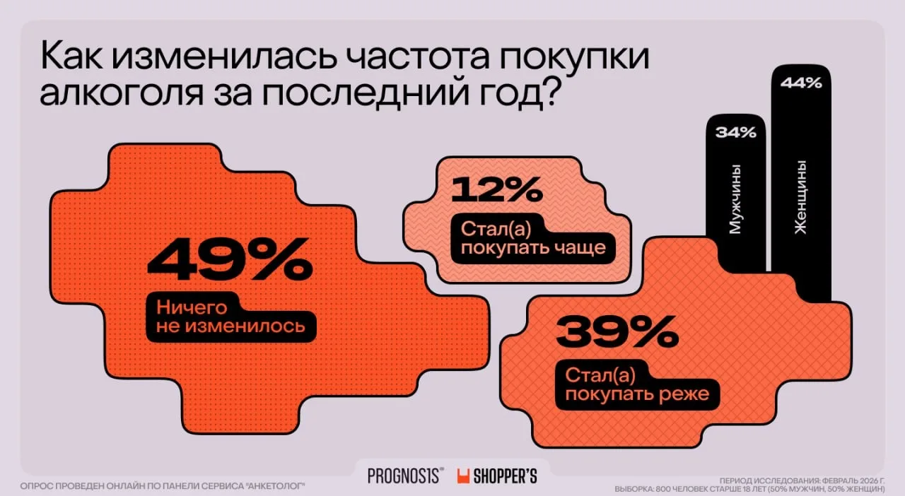 Если в цифрах, то реже стали покупать алкоголь: