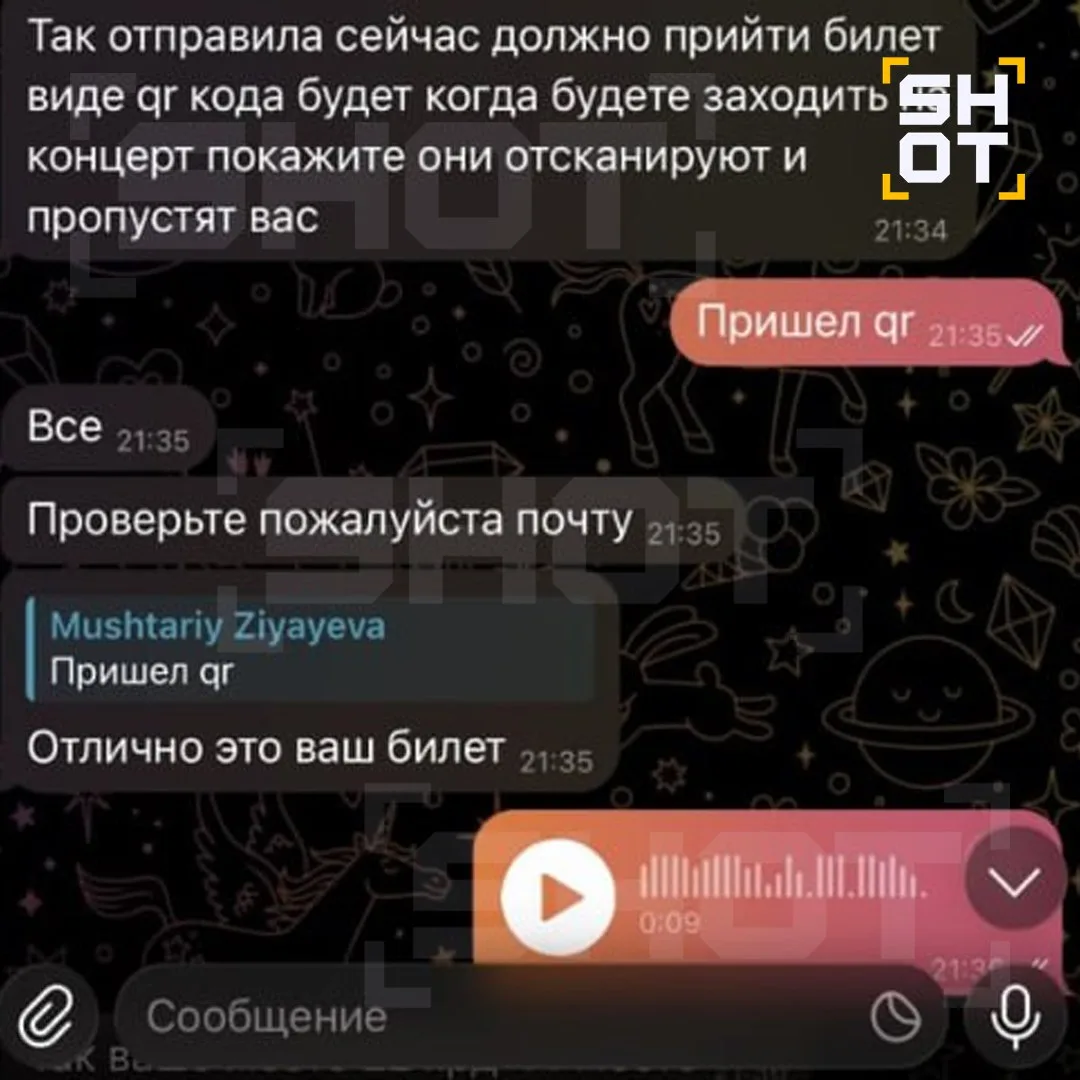 На входе код не срабатывает. Охрана разводит руками: билеты левые. А «продавец» к этому моменту уже удалил чат и пропал. Схема старая, но своих «клиентов» мошенники всё же находят. За последние дни пострадали уже десятки фанаток, особенно в Казахстане и Узбекистане, где мошенники ведут активную рассылку.