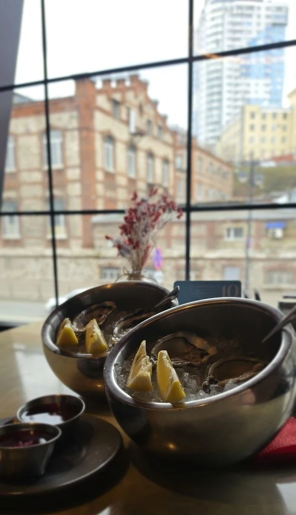 Кроме устриц в меню - стейки, шашлык, Том Ям, паста с морепродуктами и тд.