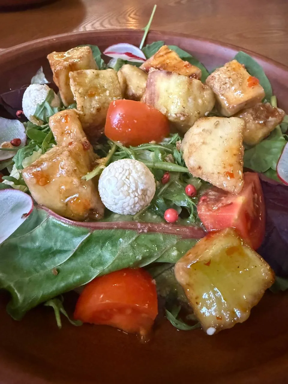 Попробовала здесь салат с баклажанами - по хрустящей корочке правильнее они сделаны в «Судаке», вместе с тем соус, которым заправлен салат, делает блюдо очень вкусным.