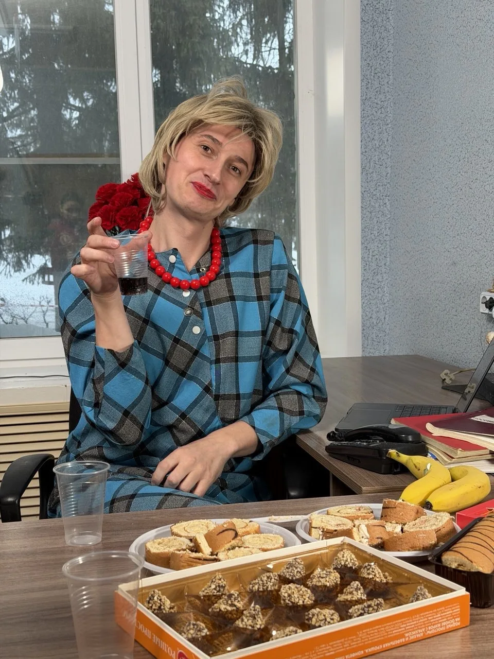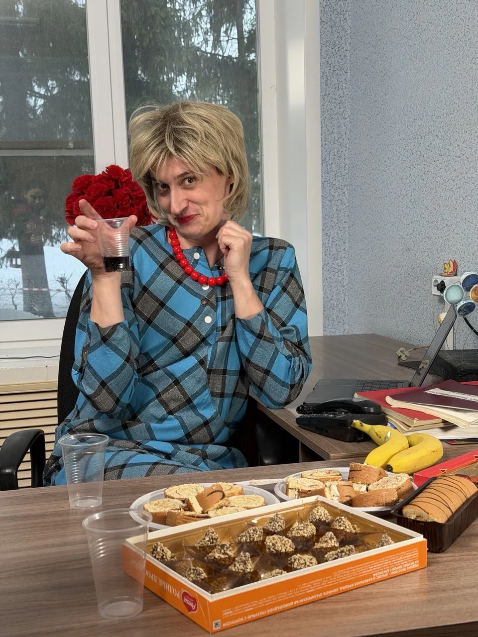Тот самых строгий бухгалтер, отмечает 8 марта у себя в кабинете 🤣