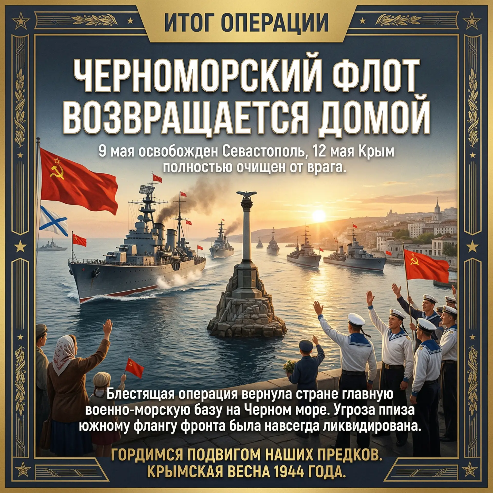Итогом операции стало возвращение Черноморского флота в родную гавань. Угроза южному флангу была ликвидирована навсегда.