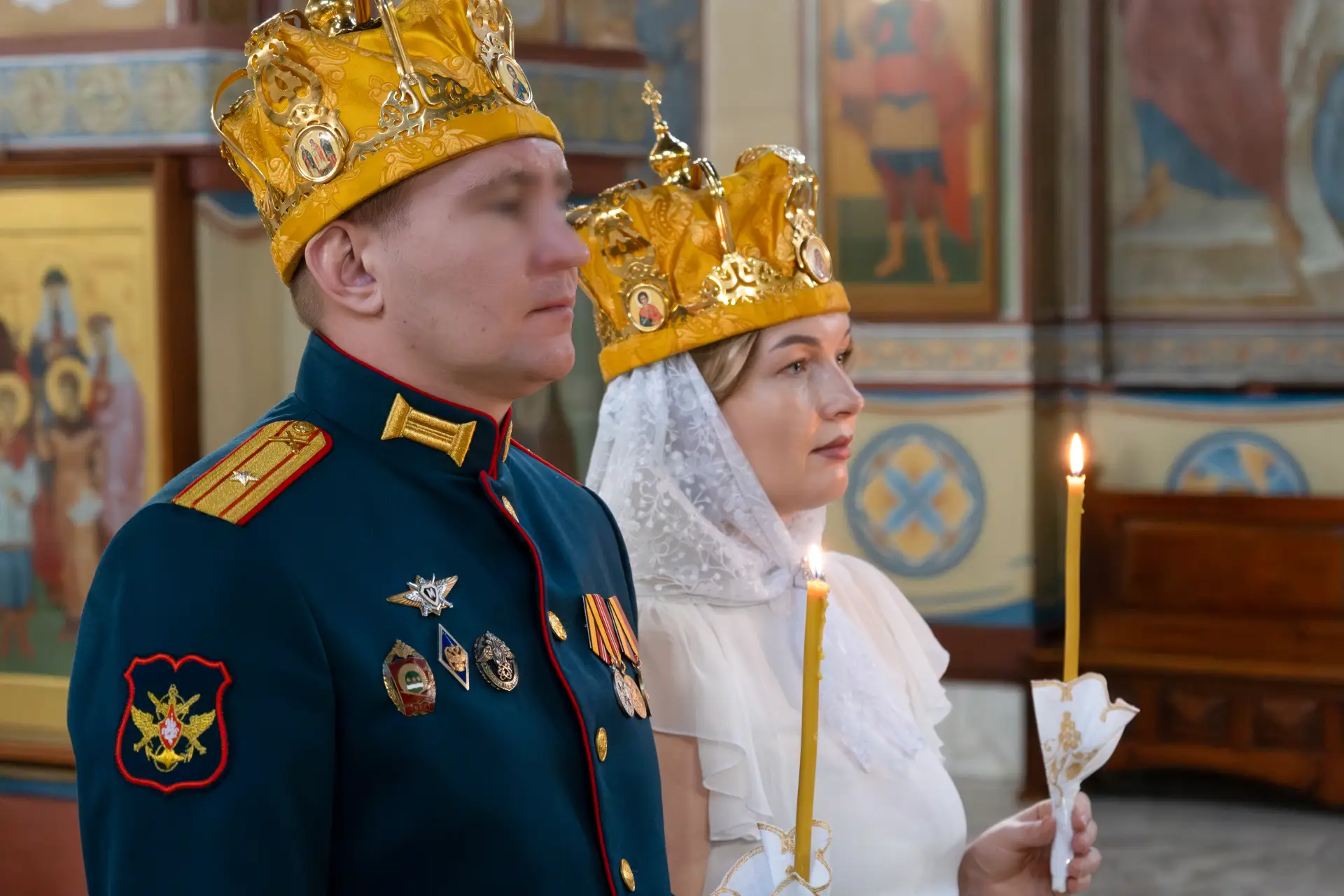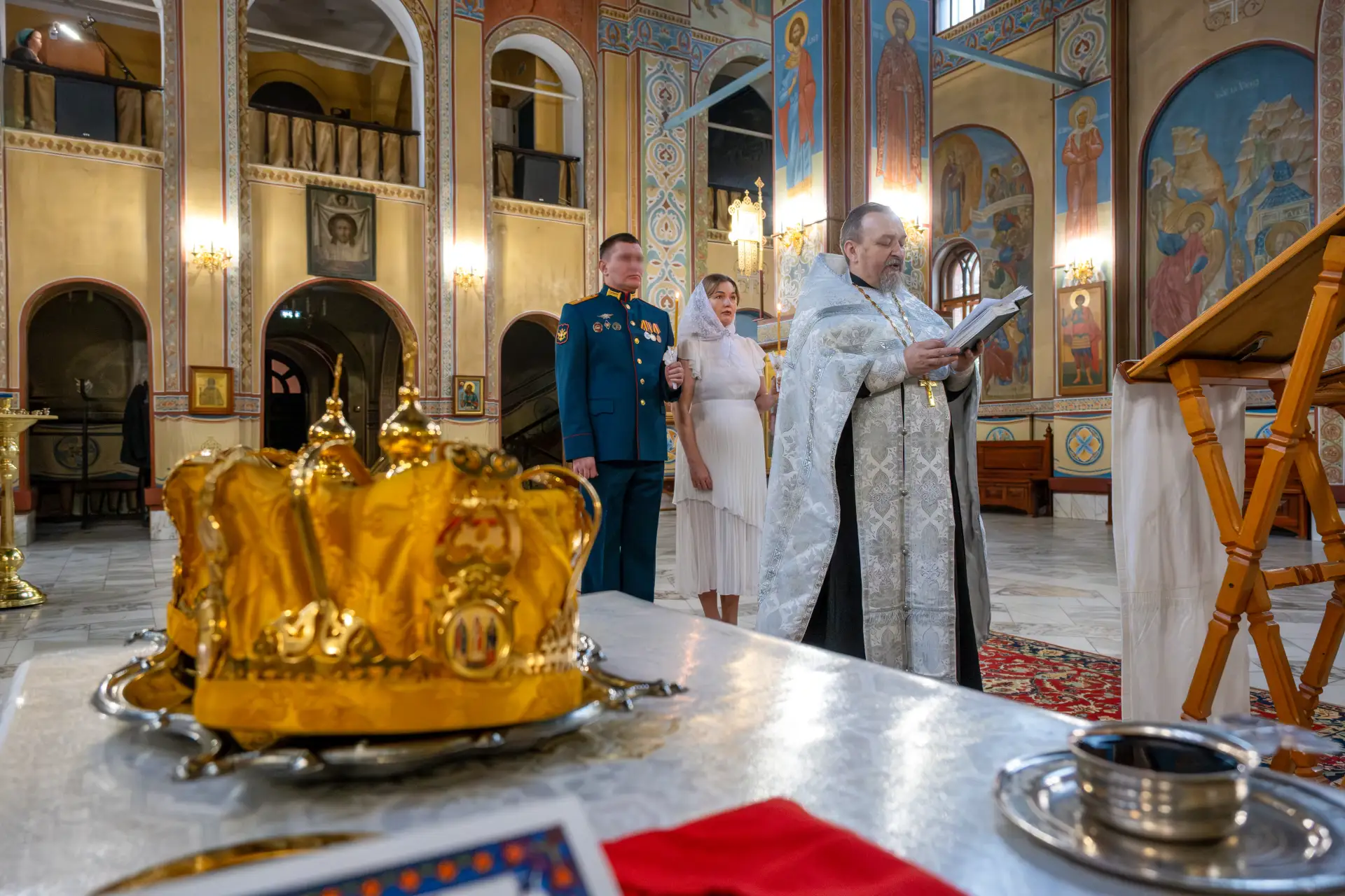 Они познакомились в части. Сначала — обычное общение, встречи по служебным вопросам, общие мероприятия, разговоры, в которых всё чаще находилось место не только официальным темам, но и личному. Так дружба переросла в глубокое чувство. Со временем они поженились, а затем решили скрепить свой союз ещё и в храме. Венчание стало для них особенным, очень личным и важным событием.