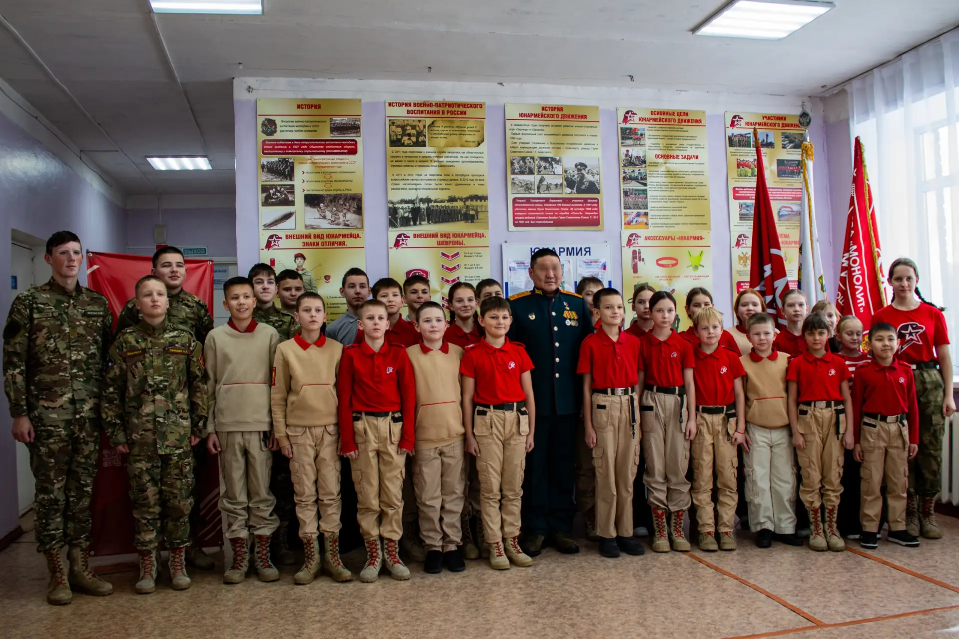 В военном городке Иркутской области, на базе средней образовательной школы №178, прошёл урок мужества для юнармейского отряда «Монолит» с участием Героя России с позывным «Хам-Хар».