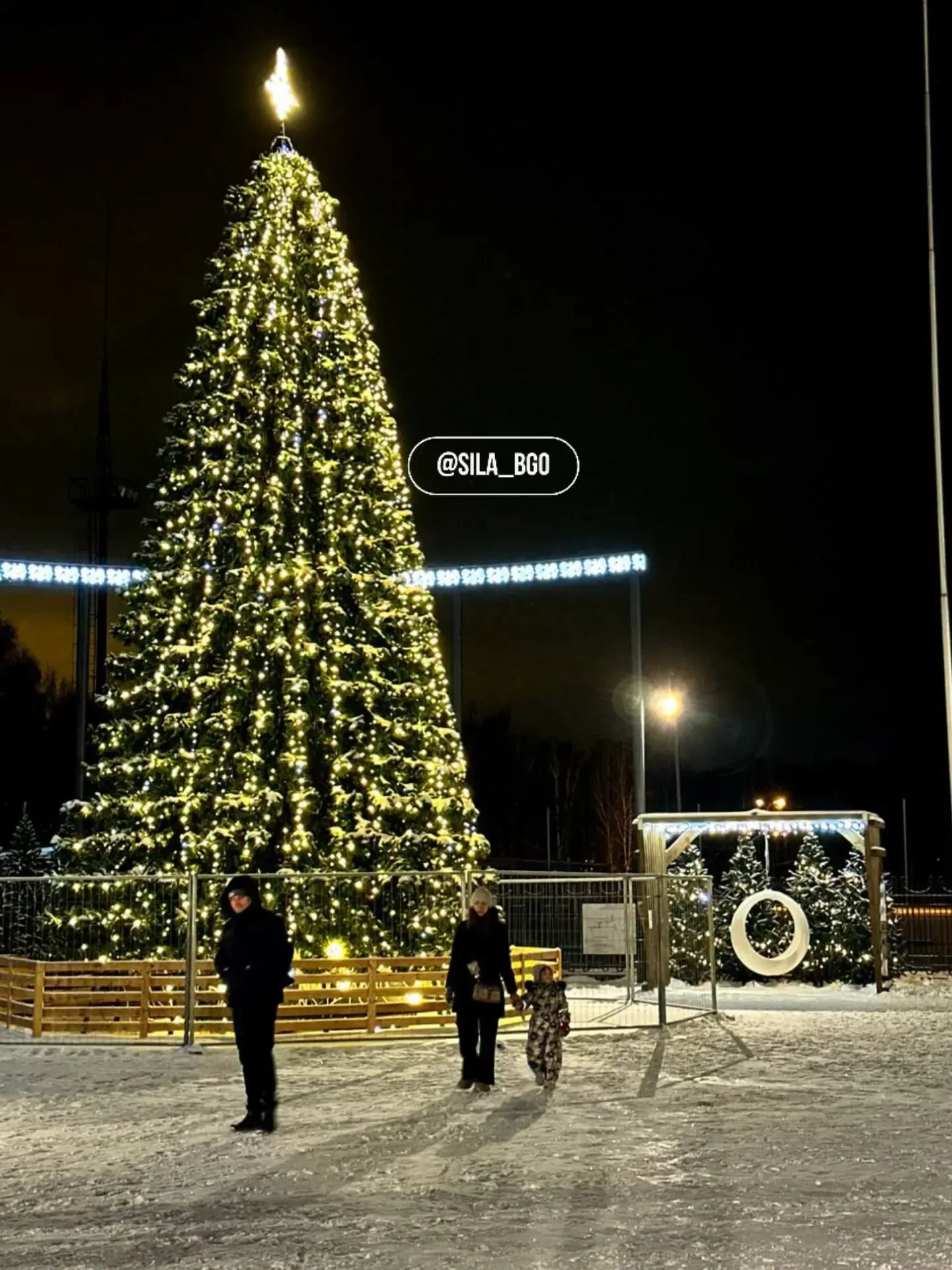 Работы по заливке катка в Лосином продолжаются. Сегодня был вморожен в лед поздравительный баннер для всех любителей катания на коньках.
