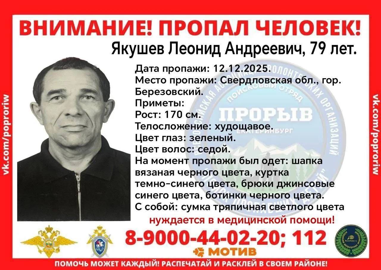 Если вам известно местонахождение пропавшего, пожалуйста, позвоните в ОВД Берёзовского по телефону 8-343-694-75-00 или 112, 102 или на горячую линию отряда «Прорыв» по номеру 89000440220