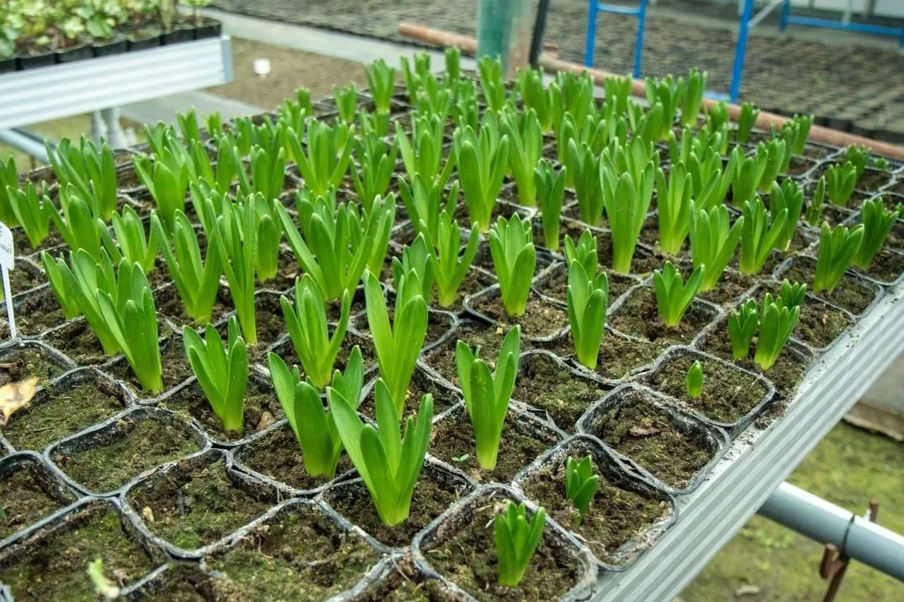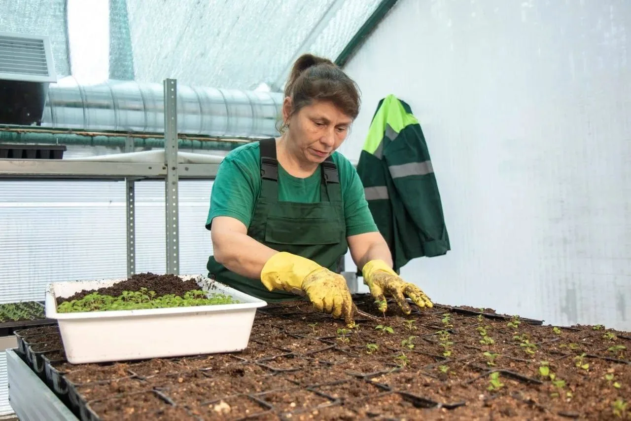 Рассаду уже готовят в теплицах — следят за температурой и поливом, чтобы растения окрепли к высадке. Сейчас завершают весеннюю партию: около 20 тысяч виол, незабудок и маргариток скоро появятся на клумбах.