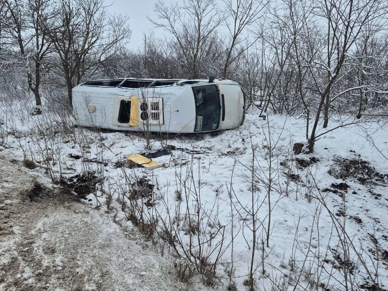 Микроавтобус опрокинулся на трассе в Крыму;