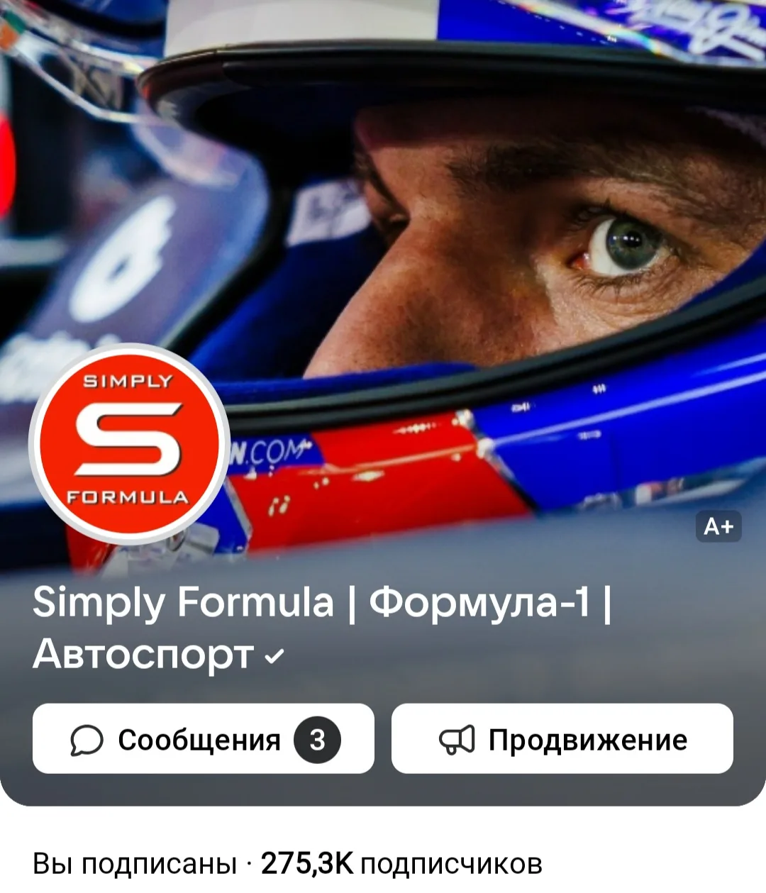 ⚡️ Всё прямые трансляции Формулы-1 2026 на канале Simply Plus пройдут только Вконтакте