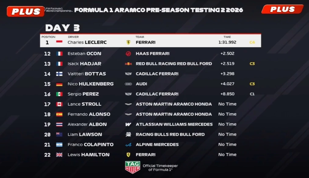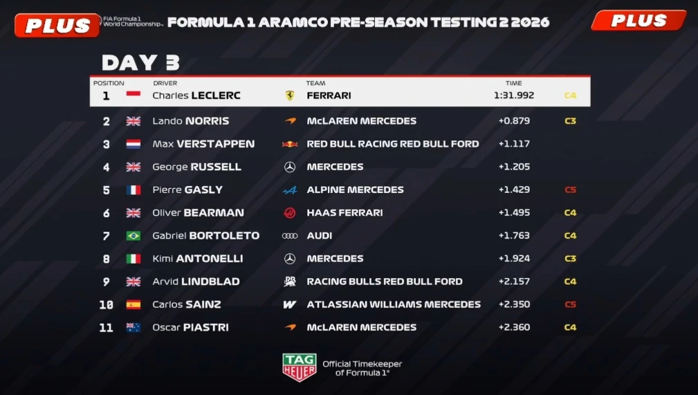 🇧🇭 Результаты - День 3. Финальные тесты Формулы-1 2026 в Бахрейне