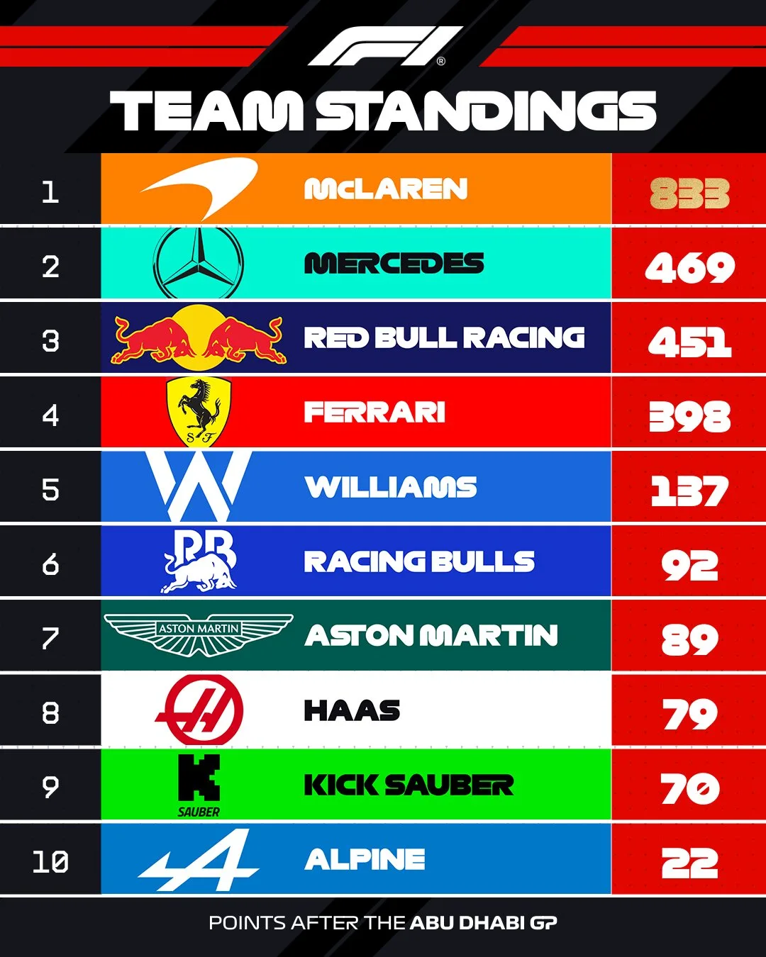 Финальный личный зачет и Кубок Конструкторов Формулы-1 2025