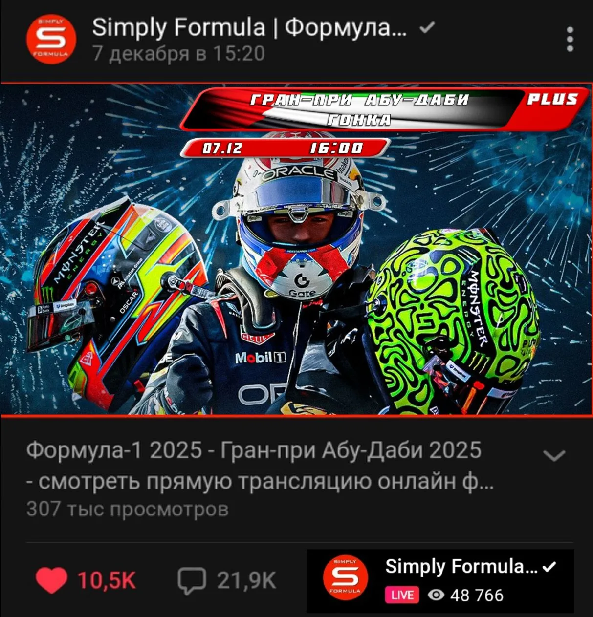 Эфир Гран-при Абу-Даби 2025 стал самым успешным в истории Simply по всем показателям.