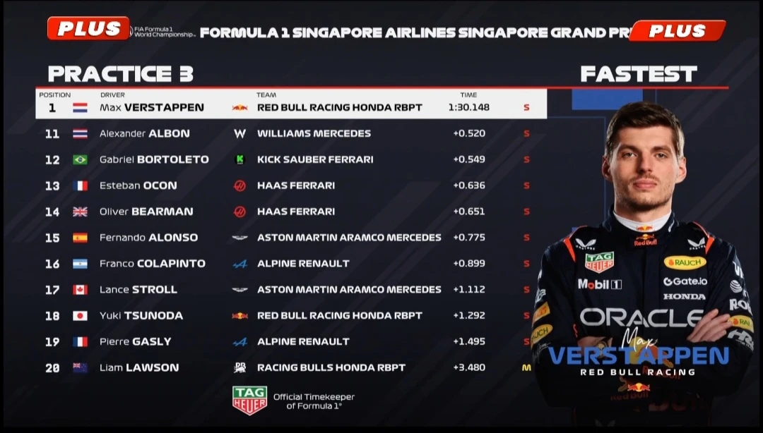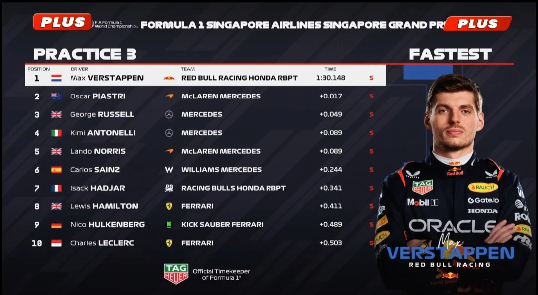 🇸🇬 Результаты третьей тренировки Гран-при Сингапура 2025
