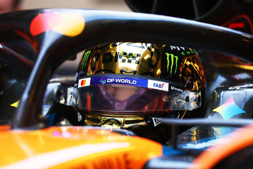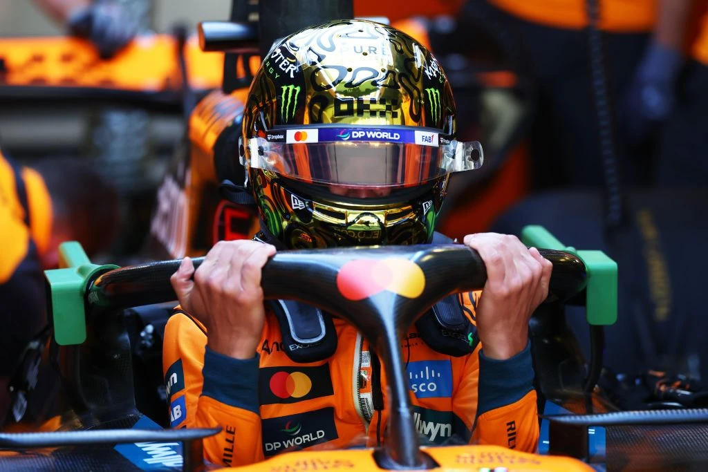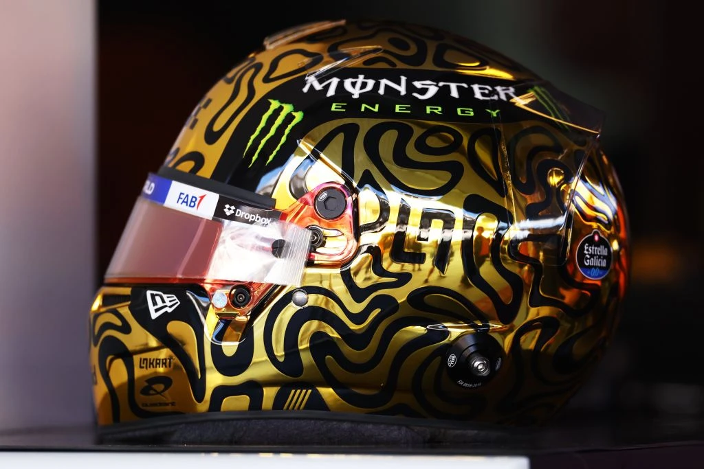 💛 Ландо Норрис выехал сегодня в чемпионском золотом шлеме на пост-сезонных тестах Формулы-1 2025 в Абу-Даби
