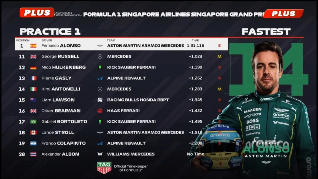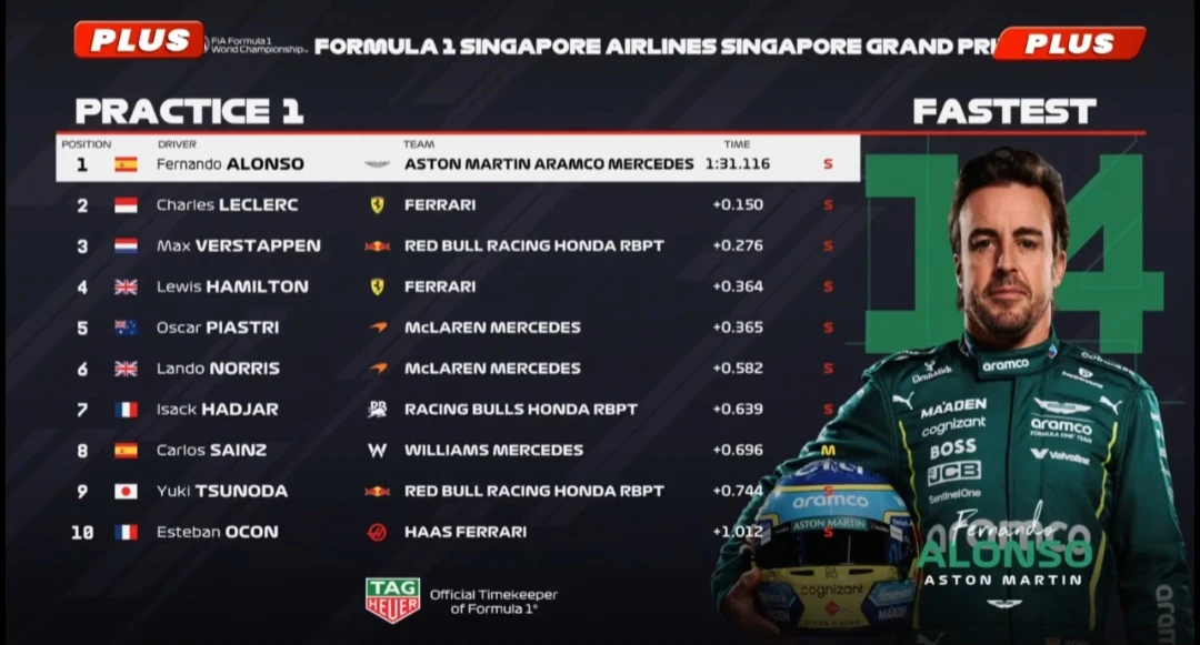 🇸🇬 Результаты первой тренировки Гран-при Сингапура 2025