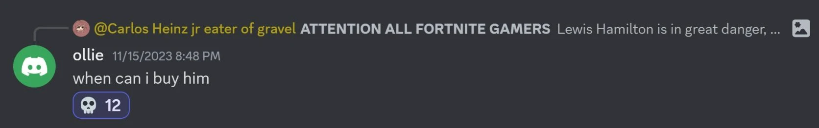 Когда в игре Фортнайт вышел скин Льюиса Хэмилтона, Оливер написал "когда я могу его купить". Пользователи сочли комментарий двусмысленным с намёком на рабство и расизм.