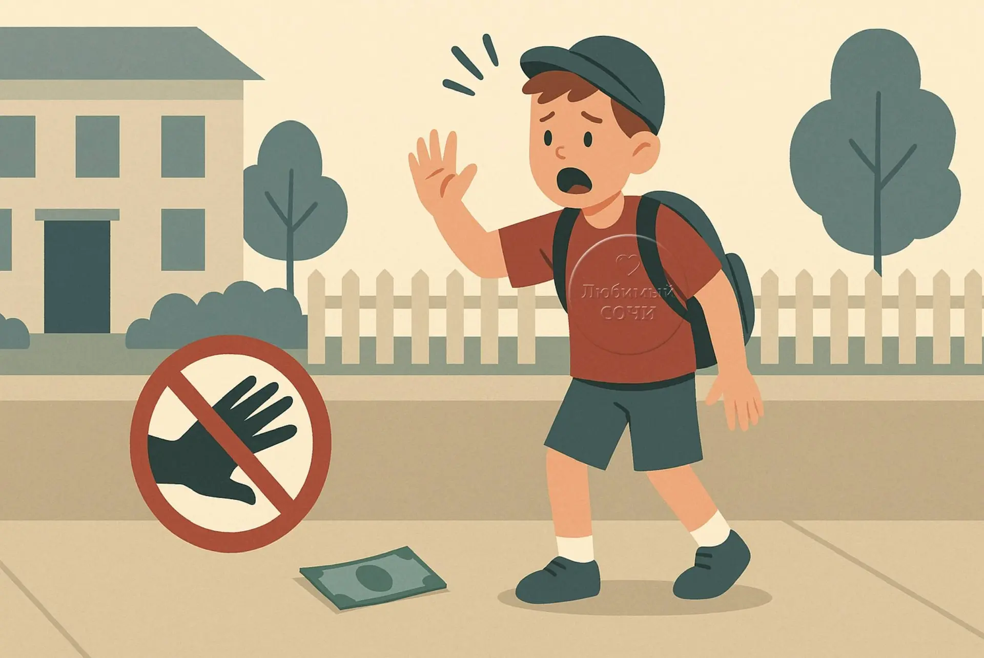 Если на улице, в школе или в подъезде вы видите на полу деньги, телефон, пакет или любой другой предмет — не трогайте его!