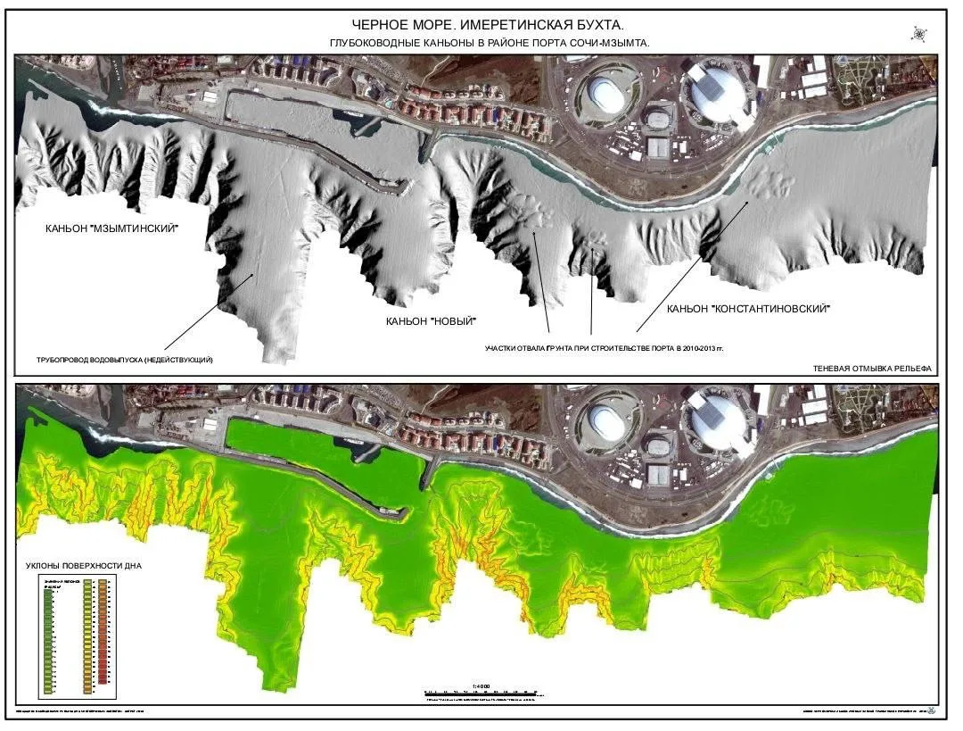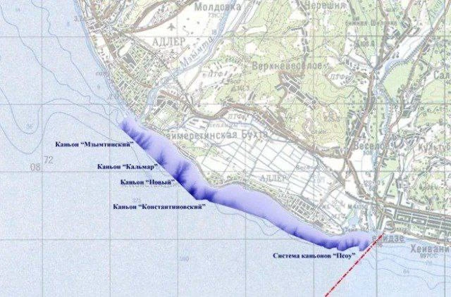 ⏺ Вдоль побережья Имеретинки проходят подводные каньоны, такие как Новый и Константиновский. Когда мощная волна ударяет о стенку каньона, она поднимает из глубин еще больше воды, образуя набегающие волны. Эти волны переливаются через ограждения и затапливают низменность.