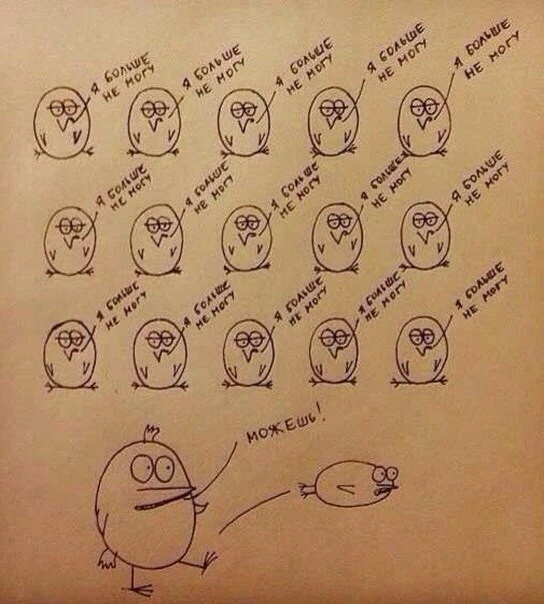 Да то, что покачав пресс, побегав по утрам, посидев на диете - неделю, в лучшем случае две, они бросают своё благое начинание, мотивируя это тем, что "я не вижу результата, всё это не работает со мной, не нужно продолжать, проще смириться с той версией себя, которая есть сейчас, чем продолжать напрягаться дальше!"