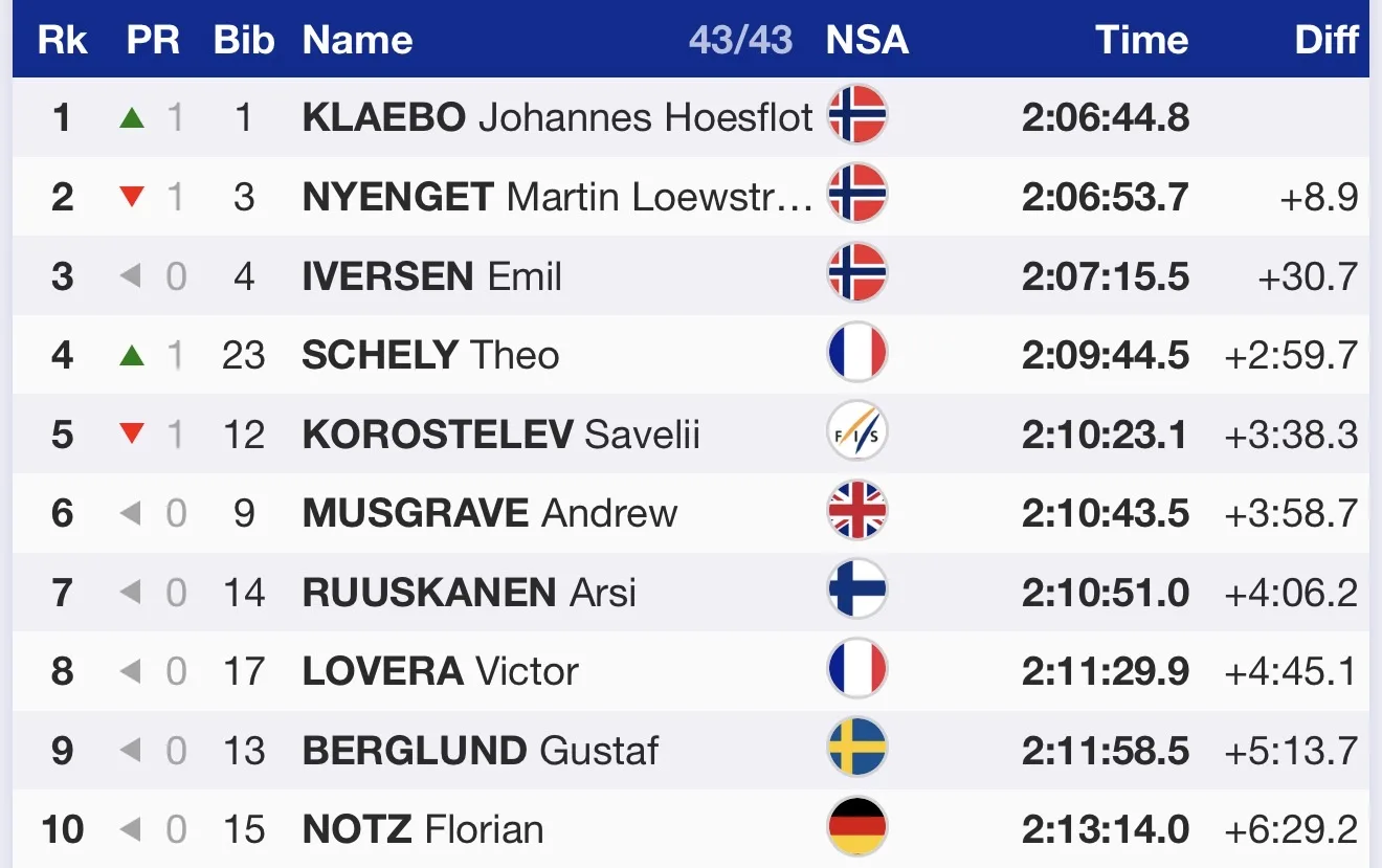 Лучшее чистое время в лыжной гонке на счету 🇫🇮 Илкки Херолы и 🇫🇮 Эро Хирвонена.