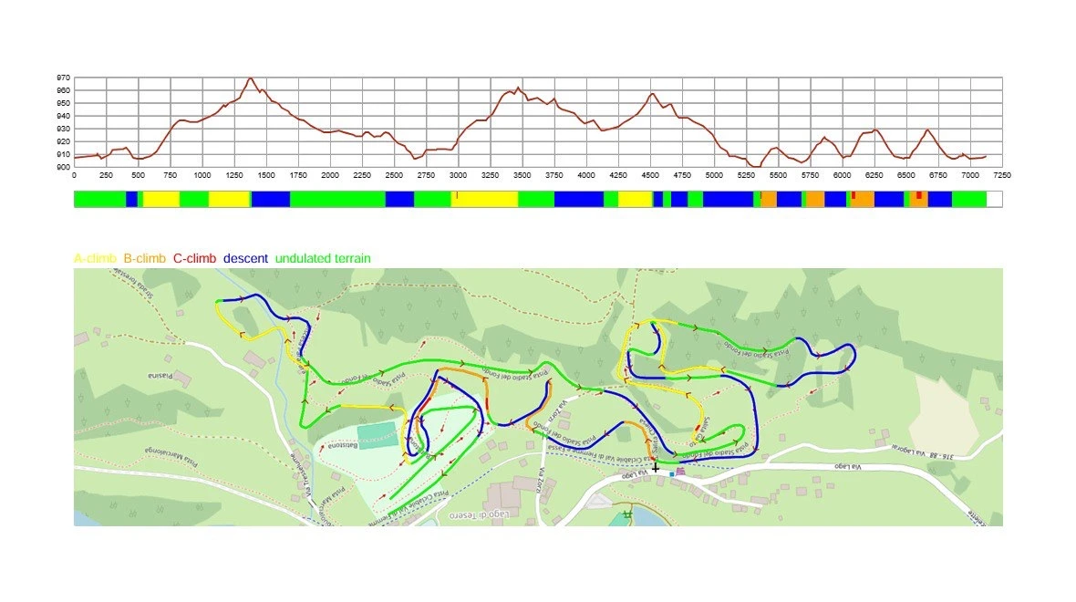 Этот круг частично состоит из элементов двух эстафетных кругов. Он начинается с каскада подъемов конькового эстафетного круга высотой в 61 метр. Далее после долгого спуска следует большой подъем из классического эстафетного круга высотой 51 метр. Затем лыжникам предстоит уйти вниз по долине на участок, который ранее не использовался на этой Олимпиаде, где их ждет подъем высотой 26 метров. Круг завершается возвращением на стадион через несколько холмов, последним из которых станет подъем Дзордзи.