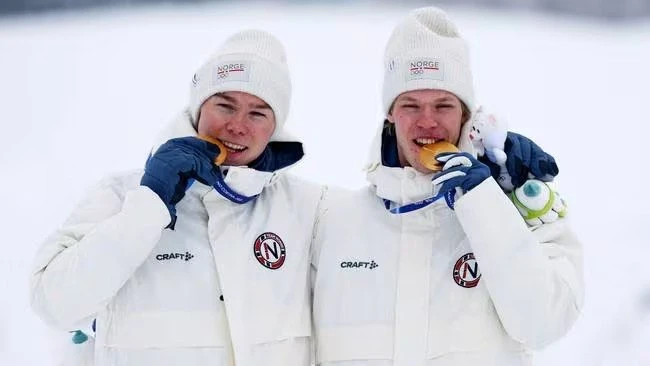 В лыжном двоеборье золотую медаль в командном спринте 2х7.5 км по системе Гундерсена на Олимпиаде-2026 завоевали 🇳🇴 Андреас Скоглунд и 🇳🇴 Йенс Офтебро.