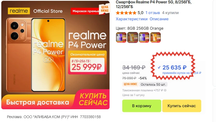 🆕 Старт продаж • realme P4 Power 5G с батареей 🔥10.001 мАч • 8/256