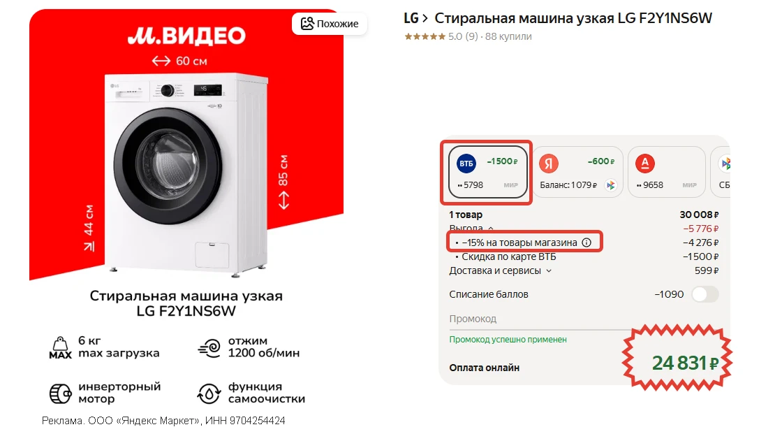 💸 24.831 ₽ при оплате картой 💳 ВТБ