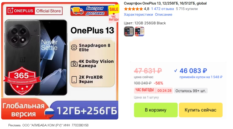 🛒 OnePlus 13 • 12/256 ГБ • глобалка • доставка из🇷🇺 без пошлины
