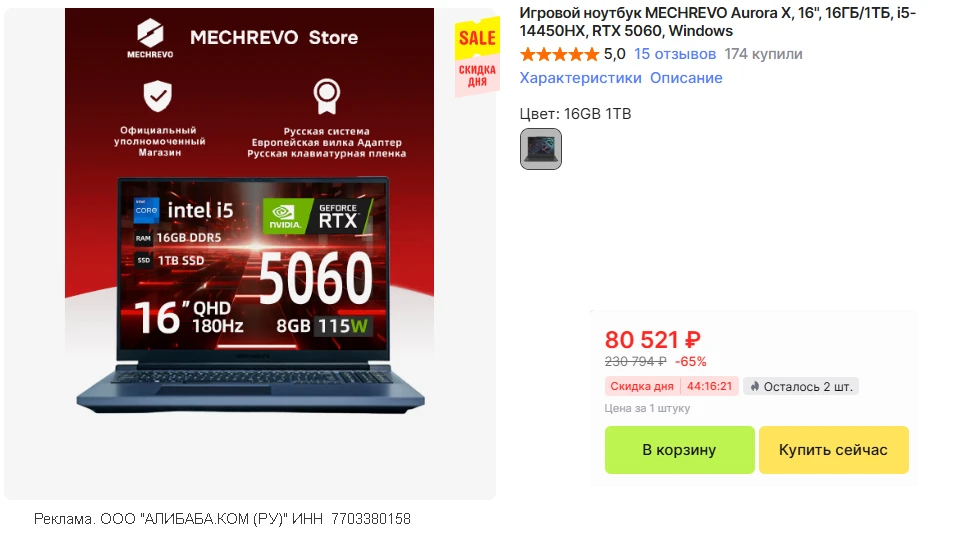 🛒 Игровой ноутбук MECHREVO Aurora X • доставка из🇷🇺 без пошлины • минус 4К относительно прошлых дней выгоды