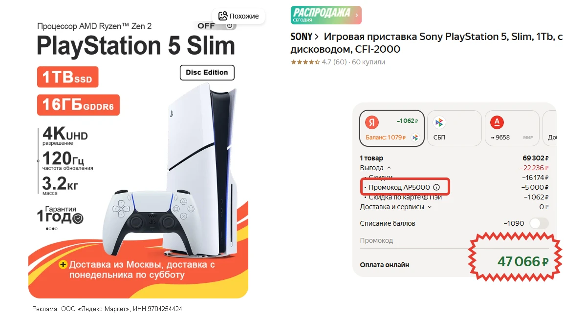 💸 46 083 ₽ с купоном