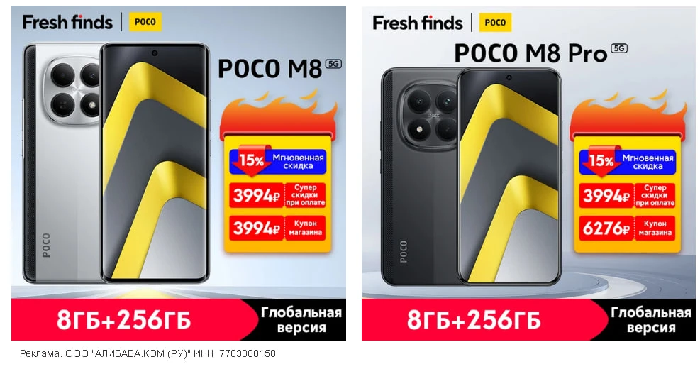 🛒 POCO M8 и M8 Pro по отличный ценам в ЧАС ВЫГОДЫ