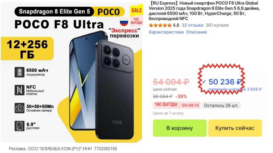 🛒 Poco F8 Ultra • 12/256 быстрая доставка из🇷🇺 без пошлины 🚨дешевле вроде не было