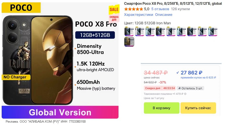 🚨Рекорд цены • лимитированная версия POCO X8 Pro Iron Man Edition • 12/512 (версия EU без зарядника)