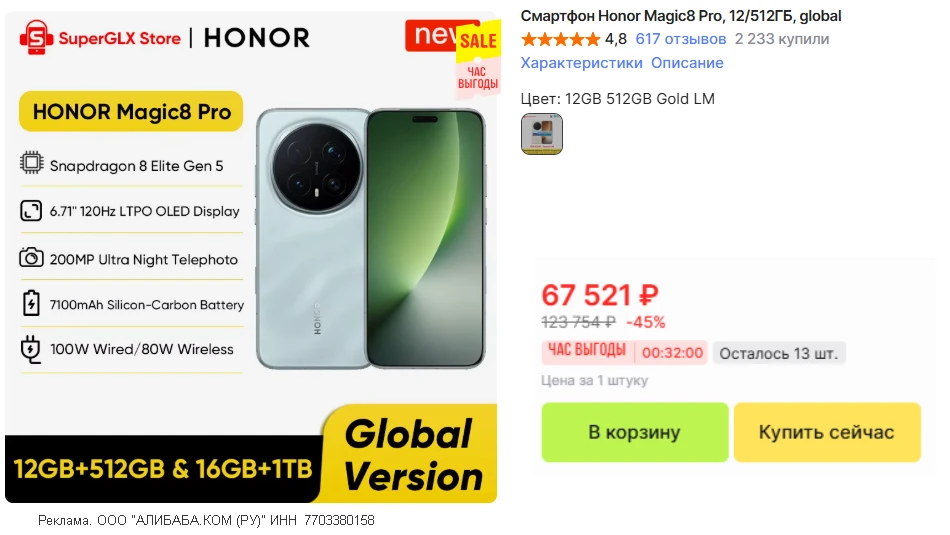 🚨Рекорд цены • Флагман HONOR Magic 8 Pro • 12/512 ГБ • глобалка (без eSim) с доставкой из🇷🇺 без пошлины