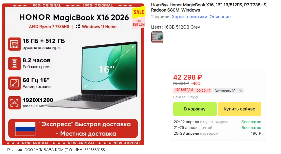 🛒 Ноутбук Honor MagicBook X16 • доставка из🇷🇺 без пошлины
