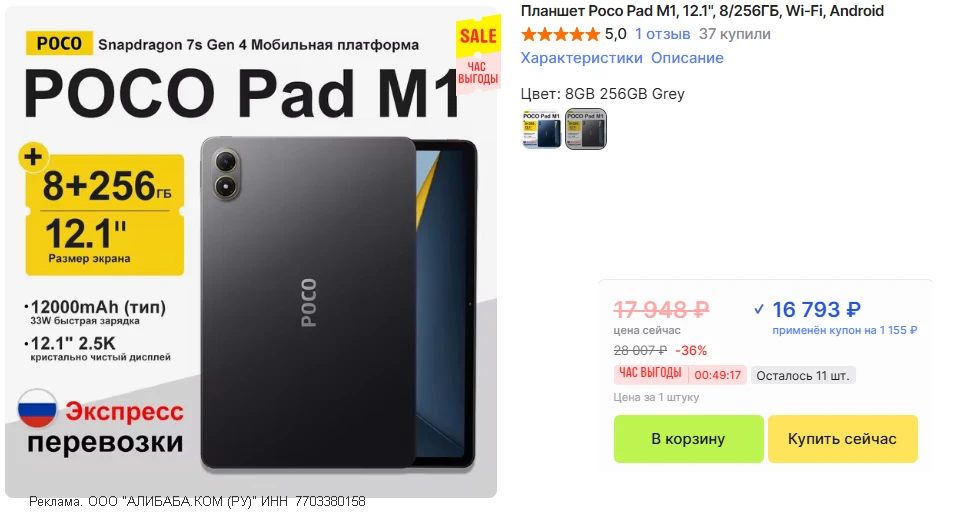 🚨РЕКОРД • Планшет POCO Pad M1 • 8/256