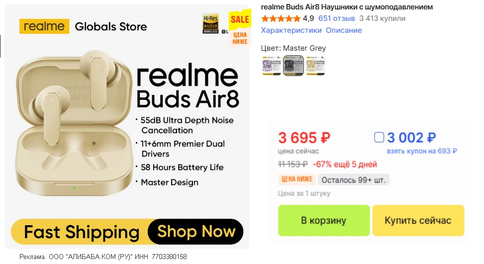 🛒 realme Buds Air 8 по хорошей цене • официальный магазин