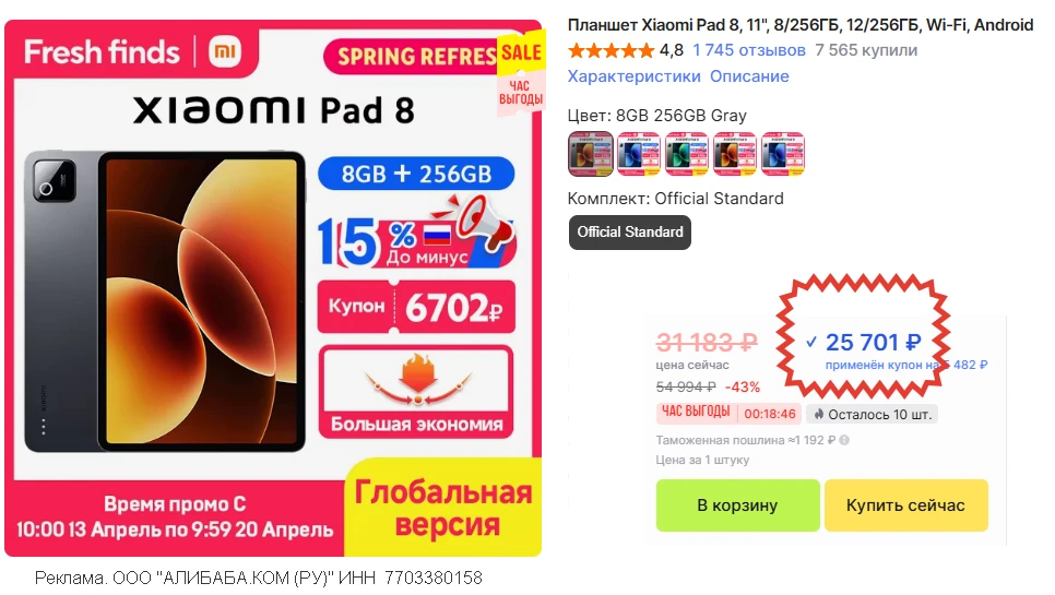 🛒 Планшет POCO Pad M1 • 8/256 с быстрой доставкой из🇷🇺