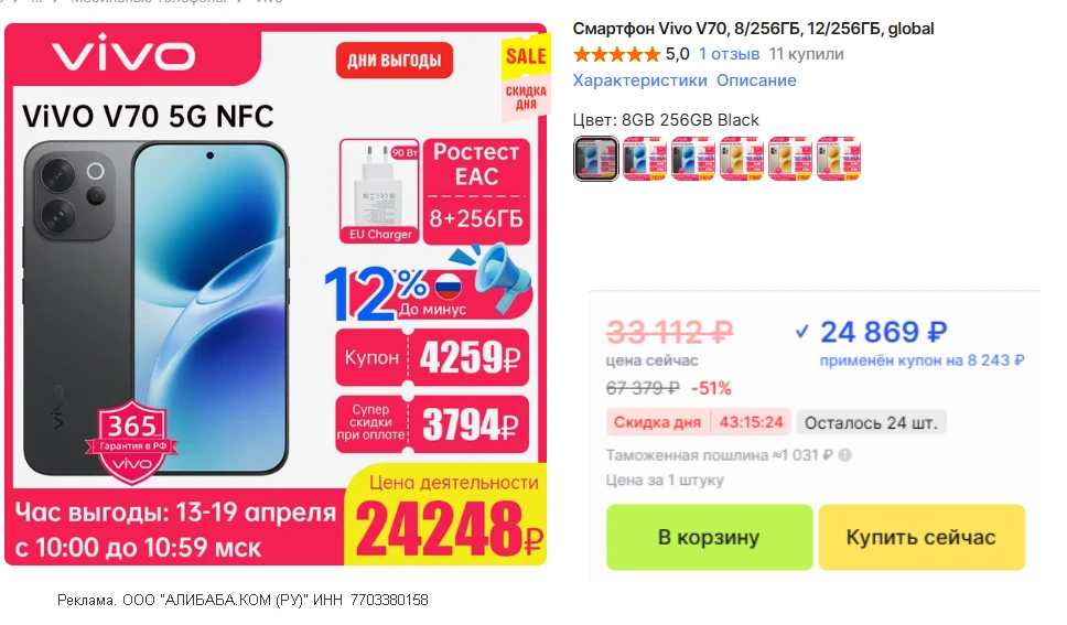 🆕 Новинка. Vivo V70 • РОСТЕСТ • советую обратить внимание, и телевик имеется 3х с оптостабом и память шустрая и по стоимости все разумно