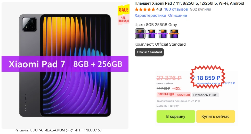 🛒 Планшет Xiaomi Pad 7 • 8/256 по отличной цене