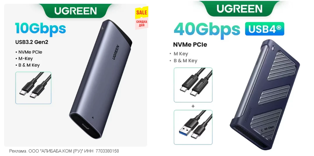 🛒 UGREEN алюминиевый корпус для SSD M.2 с хорошей скидкой - скорость 10 Гбит/с • доставка из🇷🇺