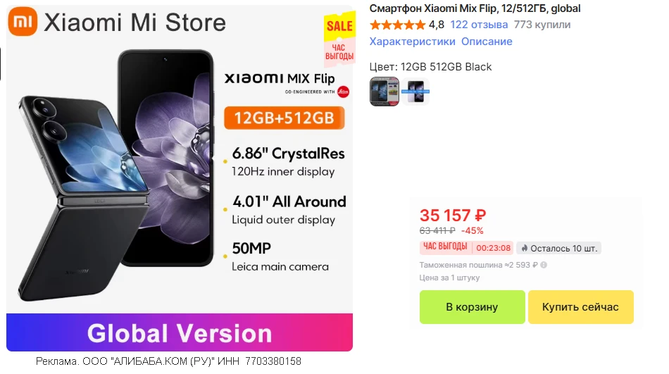 🛒 Раскладушка Xiaomi MIX Flip, максималка 12/512ГБ, глобальная версия • доставка из🇷🇺 без пошлины