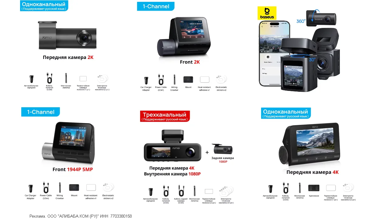 ⚙️ разрешение 4K (3840х2160) • доп. камеры (1080) • угол обзора спереди 125°, сзади 130°, салон 147° • ночное видение • дисплей 1.9" • режим парковки (только при наличии кабеля 70mai Hardwire kit) • датчик удара • GPS, Wi-Fi 6, BT 5.0 • поддержка карт памяти до 512 ГБ • Timelapse с 3 камер (1 кадр в секунду)