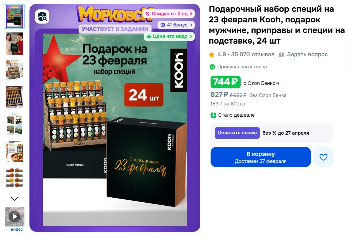 Подарочный набор специй на 23 февраля Kooh, подарок мужчине, приправы и специи на подставке, 24 шт за 744₽ с Ozon Банком - https://ozon.ru/t/GcBP1CJ
