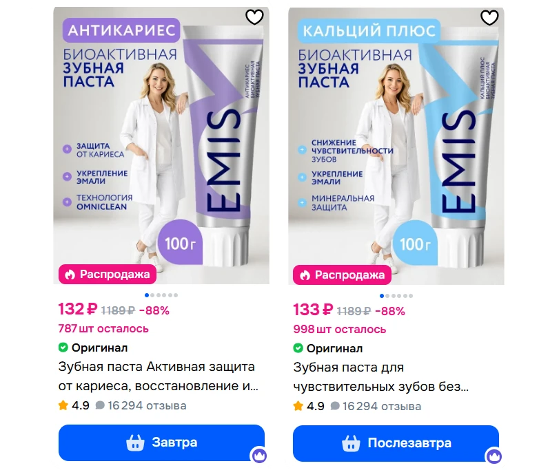 Зубная паста Активная защита от кариеса, восстановление и укрепление эмали, с фтором, биоактивная EMIS Антикариес 100 г за 132₽ с Ozon Банком - https://ozon.ru/t/nPRaTRb