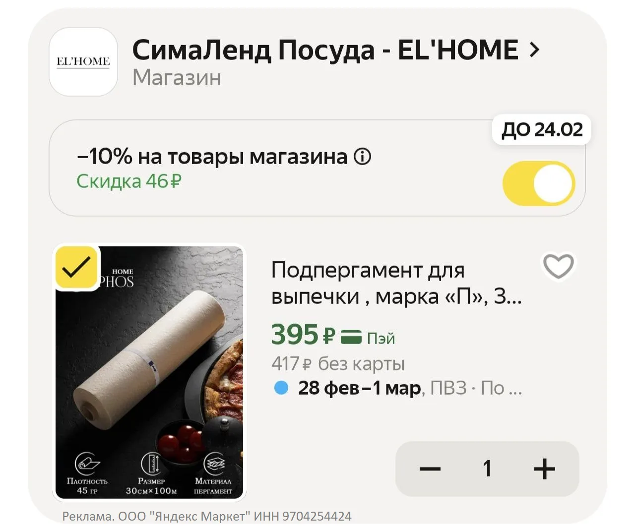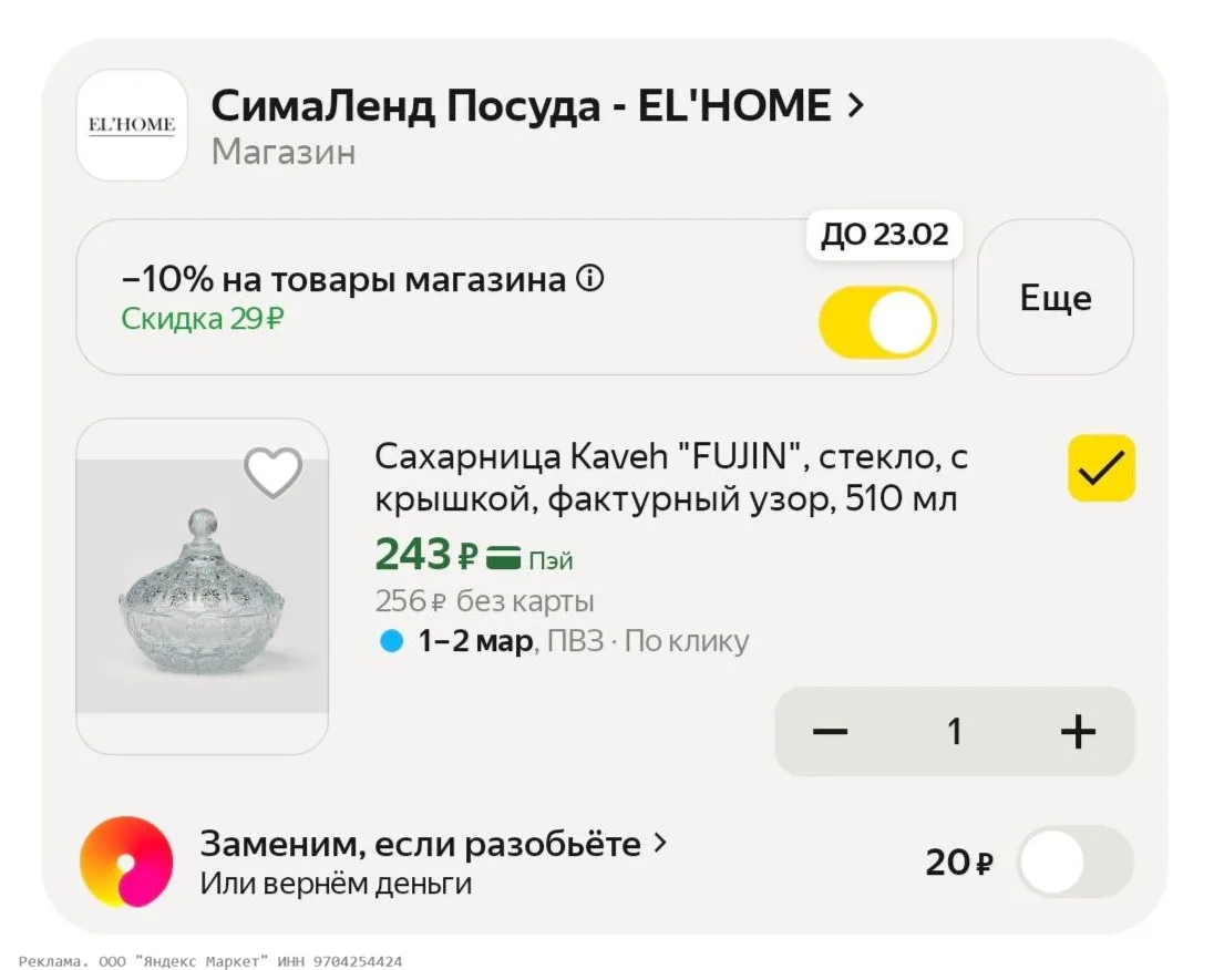SIMALANDHOME10 - https://shp.pub/7bowps?erid=2SDnjdyFih7 - доп скидка 10% на товары магазина СимаЛенд Посуда