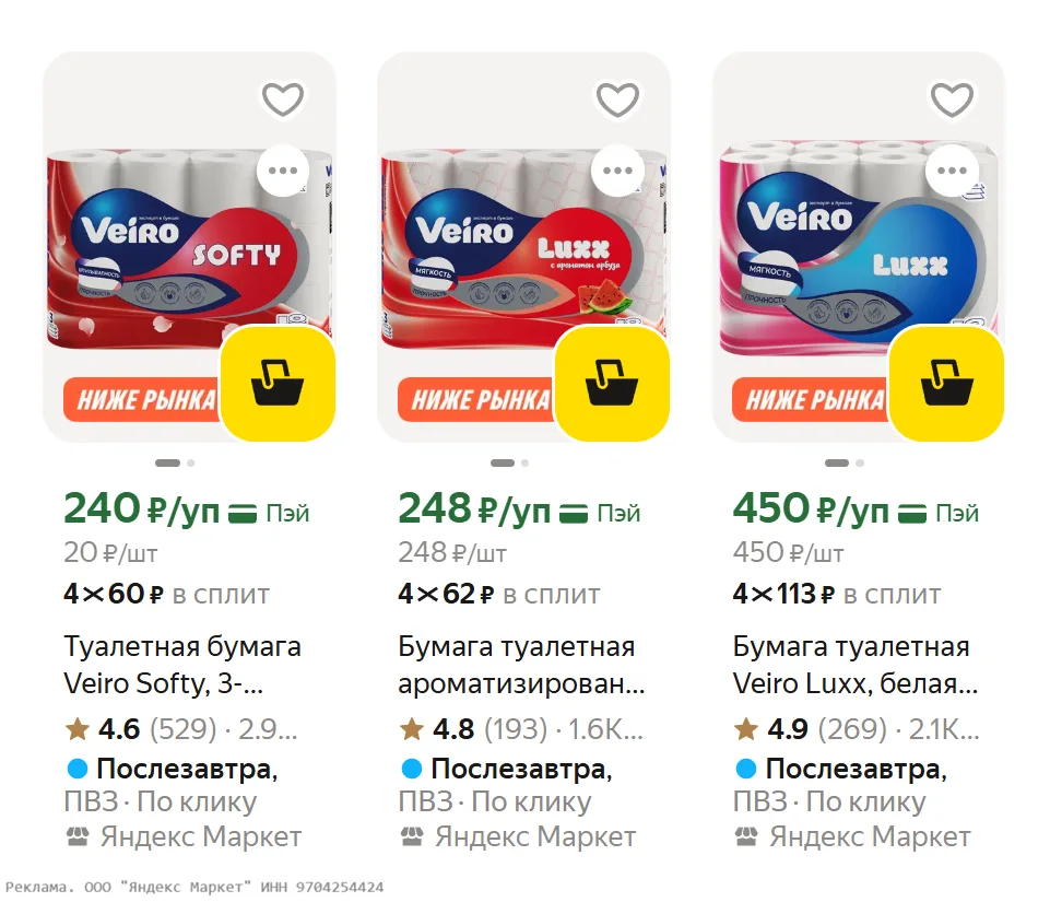 Хорошая цена на туалетную бумагу Veiro на Яндекс Маркет
