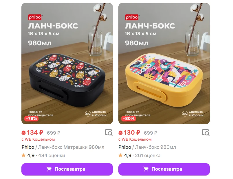 Ланч-бокс Phibo 980мл за 130₽ - https://www.wildberries.ru/catalog/210905080/detail.aspx